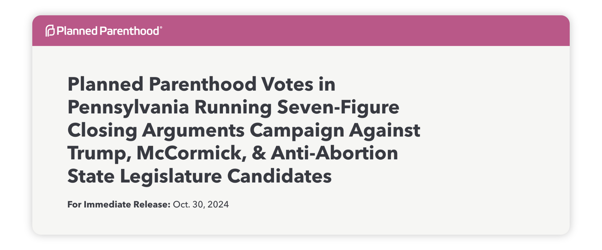 “Planned Parenthood’s actions make it clear: this organization is not in the business of health care. Rather, it is a political machine with a singular focus on pushing abortion and using its considerable resources to influence elections.